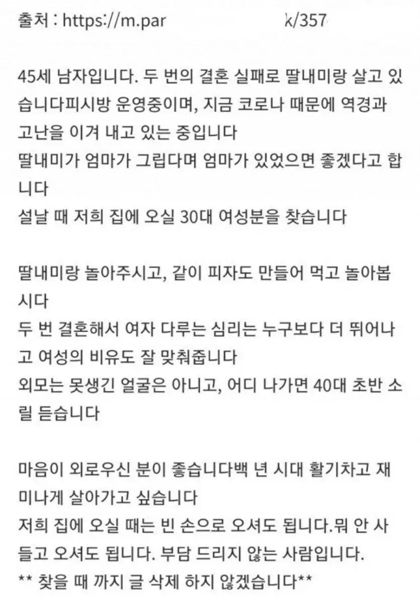 45세 남자입니다. 애엄마 구합니다